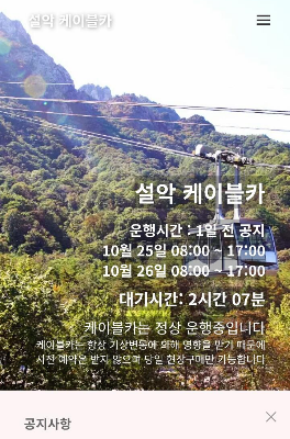 케이블카 운행시간과 대기상황을 알 수 있습니다.